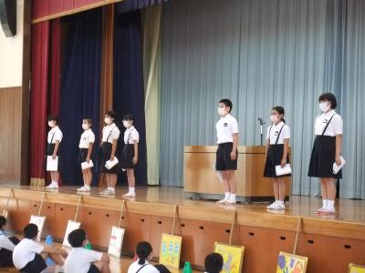 各委員長と団長,副団長は,はきはきとした大きな声で全校児童に自己紹介をしました。