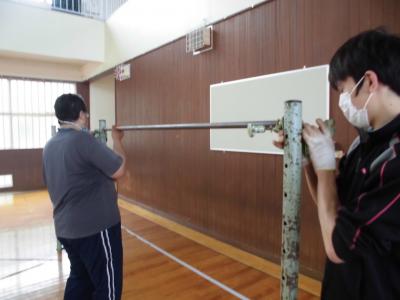 2020年5月29日 00時00分職員で鉄棒についていた錆を落とし,体育館に設置しました。