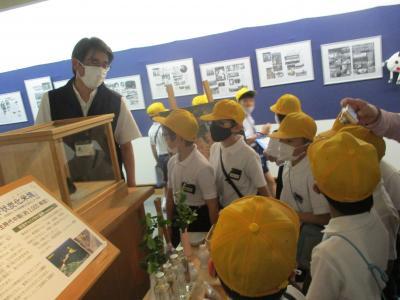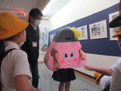 2021年6月9日 17時05分6月9日(水)に,創修館で開催されているおにぎりにちなんだ展示会を見学してきました。旧鹿西町で発見された日本最古の「チマキ状炭化米塊」のレプリカを見たり,おにぎりフェスティバルが開催されていたときの思いを聞いたりしました。フェスティバルをすることを通して,町民の心が一つにつながった貴重なお話を聞くことができ,子どもたちも大満足でした。