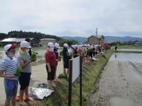 今後,社会科でも農業の学習をします。子供達はこの田植え体験から,農家の方々の苦労や工夫をしっかり学べたと思います。食大変よい勉強になりました。9月の収穫も楽しみです。