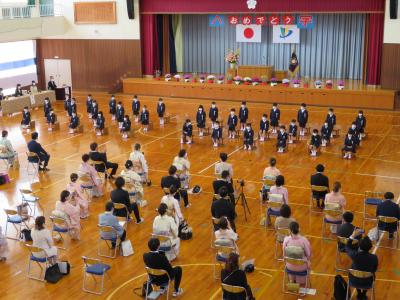 4月7日に33名の新1年生が入学しました。1年生は呼名に対し,元気な声で返事をすることができ素晴らしかったです。また,お祝いの言葉を伝えた,代表の2年生には,1年生を支えるお兄さんお姉さんといった頼もしさを感じました。
