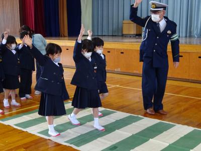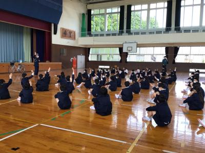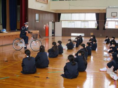 交通安全教室があり,警察官の方から交通ルールについて教わりました。なぜ交通ルールが必要なのか,自分の命を守るために守るべきことは何なのかをみんなで考えました。