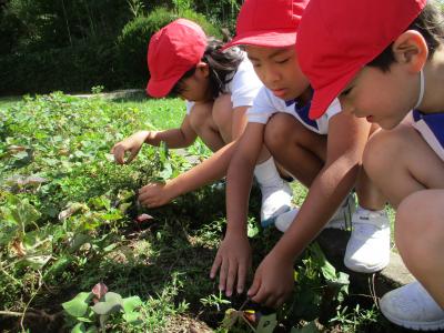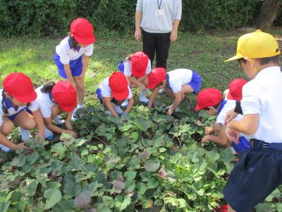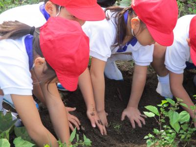 さつまいもの茎と根をたどり,さつまいもを見つけると歓声があがりました。