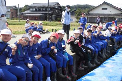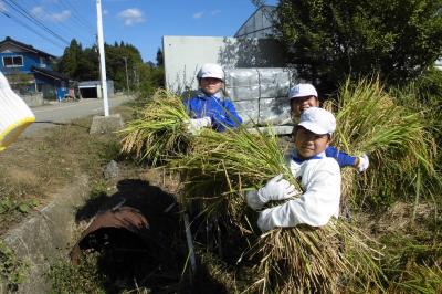 5月に植えた稲を収穫しました。教室でもバケツ稲を育てているのですが,比べ物にならない程大きく成長している様子に驚いていました。子ども達は,稲刈りの大変さを理解し,農家やお米に感謝しながら作業しており,とても充実した時間となりました。