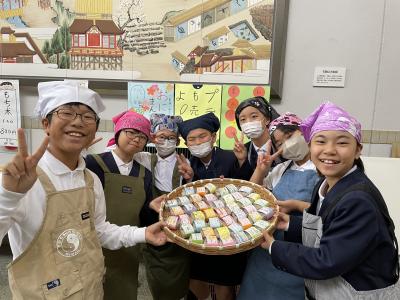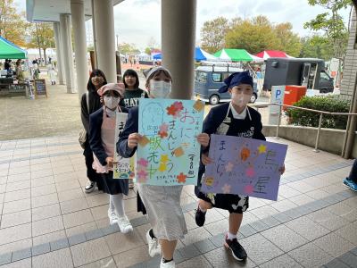 2023年11月4日 16時30分収穫したお米を中條の和菓子屋さんに依頼し,お饅頭にしたものを地域の方に販売しました。あっという間に400個完売し,子ども達は大喜びでした。最初,お客さんへの声かけに苦戦していましたが,いつの間にか慣れて元気な声が飛び交っていました。普段あまり経験できない大変貴重な時間となりました。
