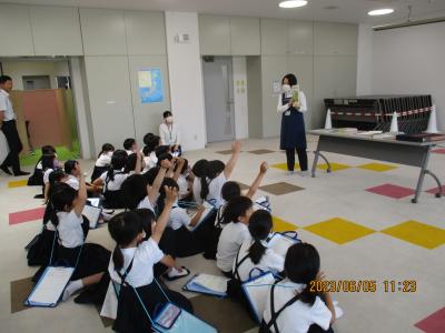 6月5日(月)に,ラピア鹿島内の中能登町立図書館に見学へ行ってきました。2021年の12月にリニューアルオープンした町立図書館は,初めてきた児童も何人かおり,みんなうれしそうに見て回っていました。子どもたちは主に児童・絵本コーナーで本の並び方などを調べました。おすすめの本や,図書館にある珍しい本なども紹介してもらい,子どもたちは興味深く聞いていました。