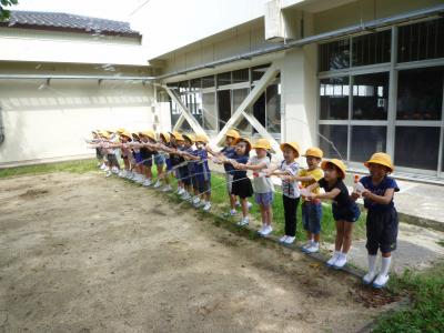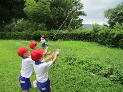 梅雨の晴れ間に,水遊びをしました。