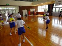 今年はとりやっ子たちの握力をあげる取組をしています。9月上旬には,体育委員会が,昼休みの時間を利用して握力アップゲームをしようと呼びかけ,縦割り班ごとにゲームに取り組みました。内容は,片手で新聞紙を丸めてできるだけ遠くへ飛ばそうというものです。できるだけ固く丸めた方が遠くへ飛ばせるので,片手でぎゅっぎゅっと新聞紙を握って飛ばしました。遠くへ飛ばすのはなかなか難しかったようですが,高学年はさすがでした。何度も挑戦して握力をあげてほしいものです。