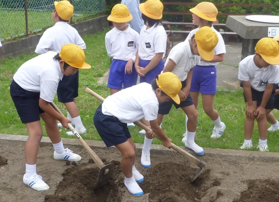 畝をつくるところもお手伝いし,子どもたちも大豆を育てるコツを一生懸命に聞いていました。
