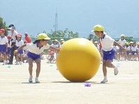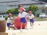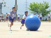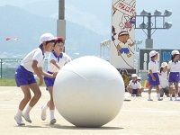 次は,大玉転がし!力を合わせて玉を転がします!よいしょ,よいしょ!!