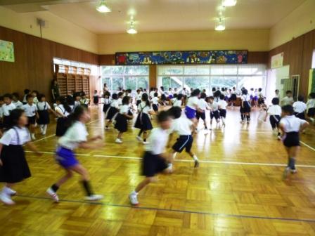 1年生と2年生は,毎月いっしょに誕生集会をしています。今月もみんなで,しっぽとりのゲームで楽しみました。どの子もいい顔で楽しんでいました。