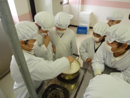 保健センターから講師の方を招いてとうふ作りに挑戦しました。