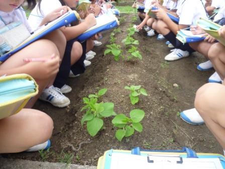 今年も3年生は総合の時間に大豆の栽培に挑戦します。手始めに畑の草むしりをしました。みんな楽しそうに作業をしていました。30分程度であっという間にきれいになりました。豊作となるように教師も子どもたちもやる気満々です。