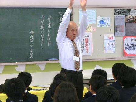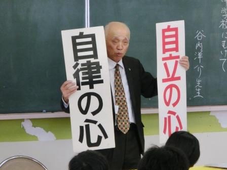 今日、中能登町の生徒指導アドバイザーの谷内先生をお迎えして、”卒業・中学校に向けて”という内容でお話していただきました。
