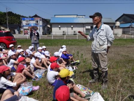5年生は5月8日に田植えを行いました。最初は,田んぼの中に入ることにちゅうちょしていましたが,入ってしまえば頑張って田植えに取り組んでいました。地域の先生に教えていただいたことを守りながら丁寧に植えることができました。終わってからも,「大変なことはなんですか?」「いつから田植えをしているんですか?」「田植えをしての喜びは何ですか?」など,いろいろ聞くことができました。学校に帰ってからの振り返り作文には,「腰が痛かった」「大変だった」「昔は苦労をしていたんだと思った」など大変さを学んだ模様。また,そこから感謝してお米をいただかなければいけないと感じたようです。そして,自分たちで作るお米の成長が楽しみにしています。