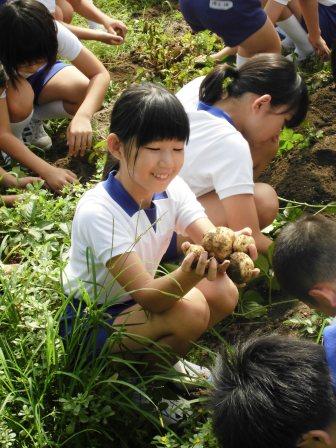 4年生が総合学習で植えたジャガイモを収穫しました。とてもたくさんのジャガイモが収穫できました。