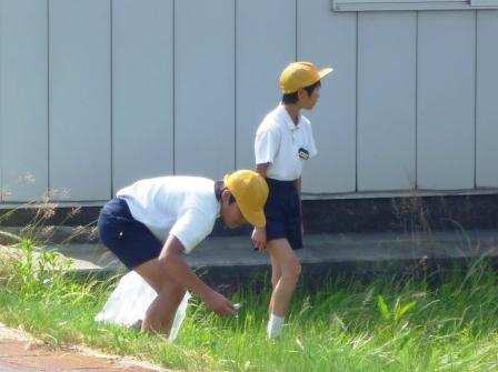 6年生は今年も総合の学習で環境について勉強しています。去年の6年生から引き継いだ、『人もホタルも安心して暮らせる町に』をテーマに、自分たちにできることを考え実践しています。その第1弾として、鳥屋地区のホタルの住む場所の清掃活動を行いました。ホタルの住む場所が人間の出したごみで汚れていることがわかったからです。1時間ほどでたくさんのごみが集まりました。この活動を通して、環境を良くするために自分たちにできることを今話し合っています。