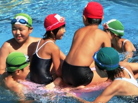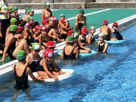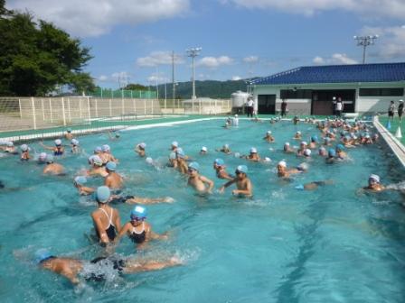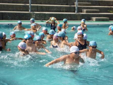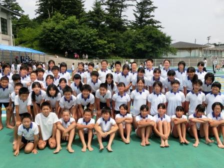 今日水泳交歓会が行われました。この日のために約1ヵ月間、毎日放課後練習してきました。練習するにつれて、泳げる距離もタイムもどんどん伸びていきました。当日は全員が精いっぱい力を出して泳ぎきることができました。