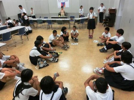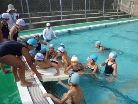 2学期が始まり、およそ1週間がたった今日、3年生と4年生がプールで交流する「なかよしプール」が行われました。4年生が企画から司会まで運営を任され、お兄さん・お姉さんとしてがんばりました。3年生といっしょに「洗たく機」「うき島リレー」「石ひろいゲーム」などの活動を楽しみ、喜んでもらうことができました。もうすぐプールの授業が終わるこの時期に、楽しい思い出をつくることができました。
