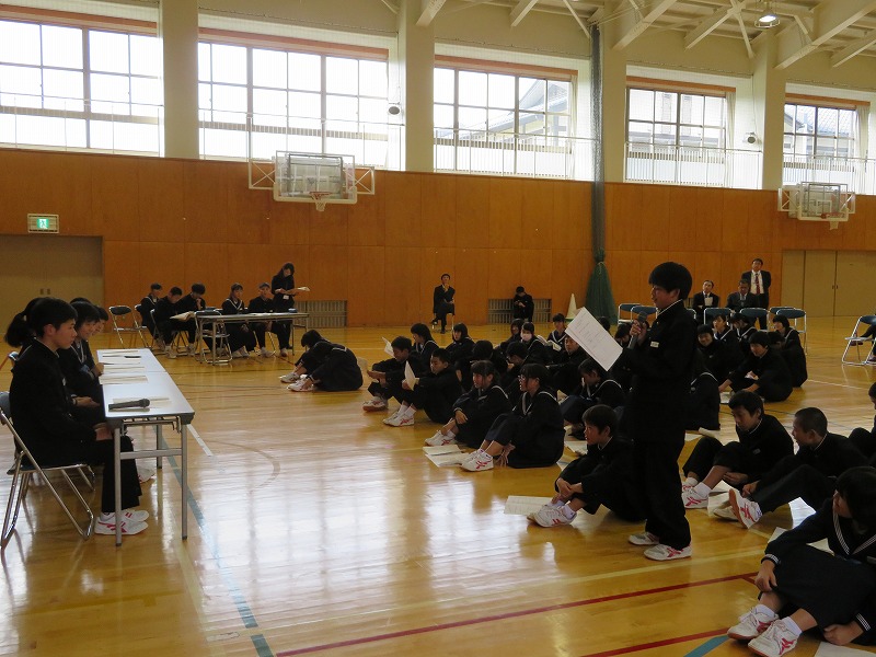 意見発表では、吉野さんが部活動から学んだことについて、大田さんが将来の夢に
