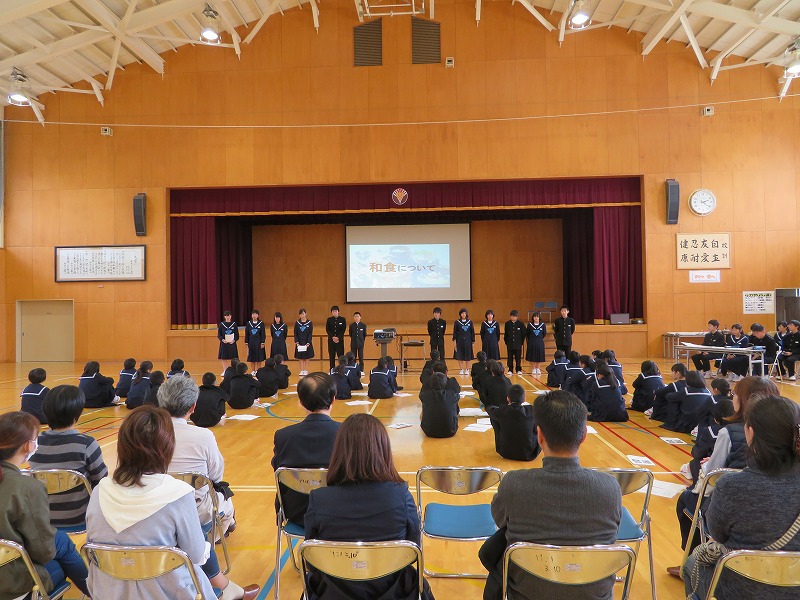 委員会発表は、給食・情報委員会から「和食について」の発表がありました。