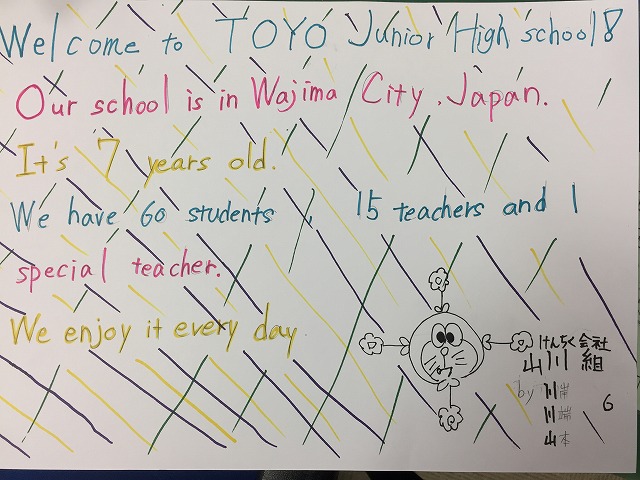 一年生が英語の時間に、「ウェブサイトを作る」単元で、東陽中学校の