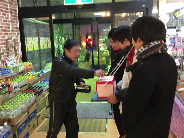 朝、生徒玄関前と夕方にもとやスーパーで行いました。