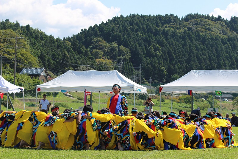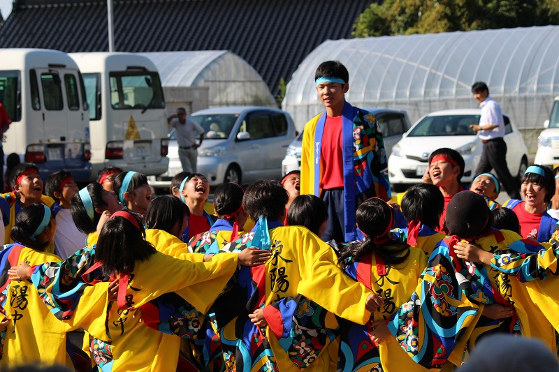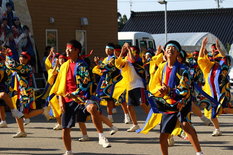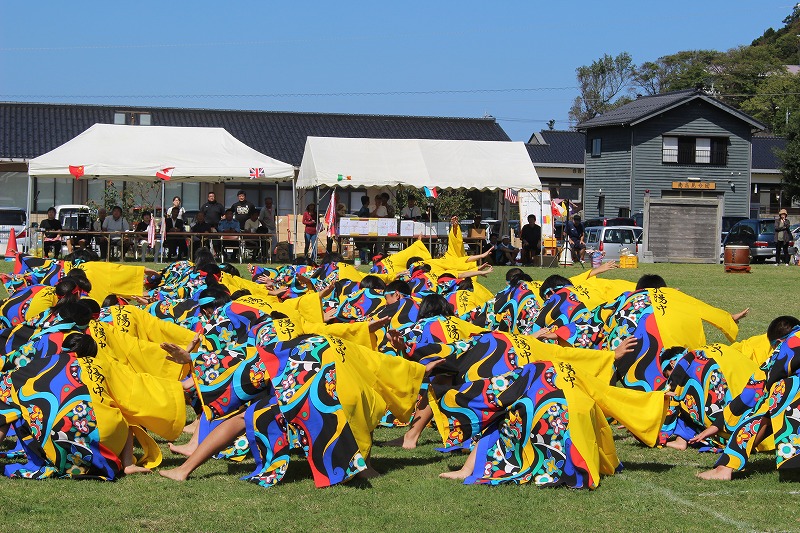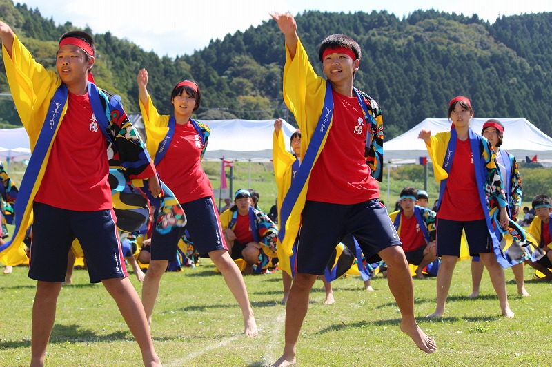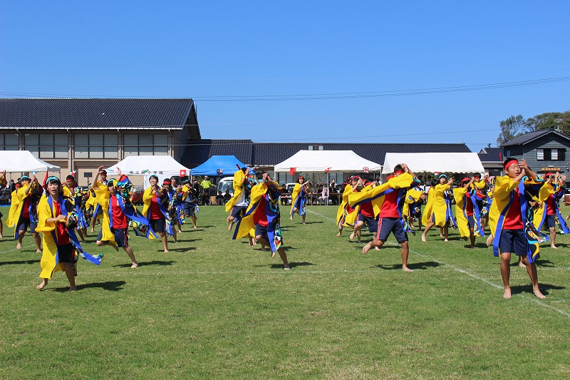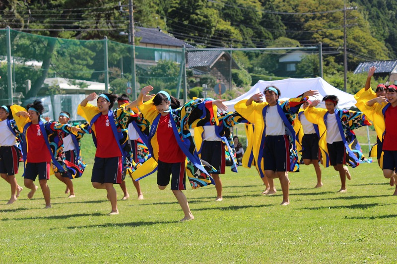 24日(日)の南志見地区の社会体育大会で、全校生徒がよさこいを披露しました。