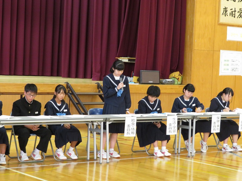 後期の生徒会・生徒委員会の役員の任命式が行われました。