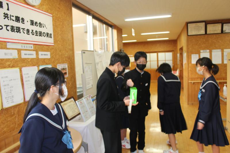 終礼時に配られ、生徒はいただいたお菓子を嬉しそうに持ち帰りました。