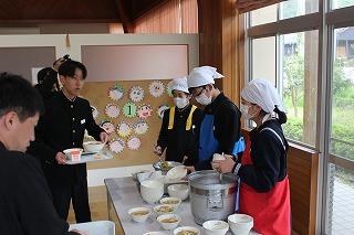 小学生と一緒にいただきました。給食準備も、みんなで協力してできました。