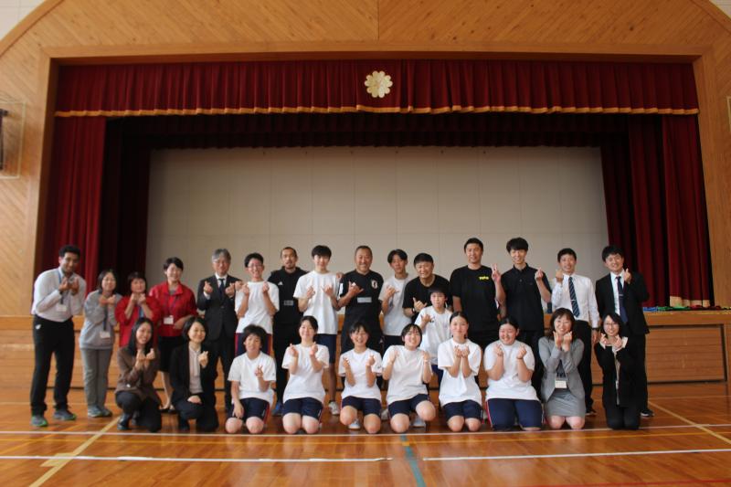 サッカー元日本代表の武田修宏さん、久保竜彦さん、前田治さんが町野小学校体育館に来られ、「スポーツを通じた子どもたちの心のケア」ということで、小中学生合同のスポーツ教室が開催されました。ジャンケンや手押し相撲を取り入れた身体ほぐしの運動の後、最後は、東陽中学校VS元日本代表のサッカー・ミニゲームで盛り上がりました。参加した児童生徒が(教職員も⁉)年齢に関係なく、本気で夢中になって身体を動かし、みんなで交流を深めることができました。お世話くださったJFA(日本サッカー協会)の皆様 、 ありがとうございました。