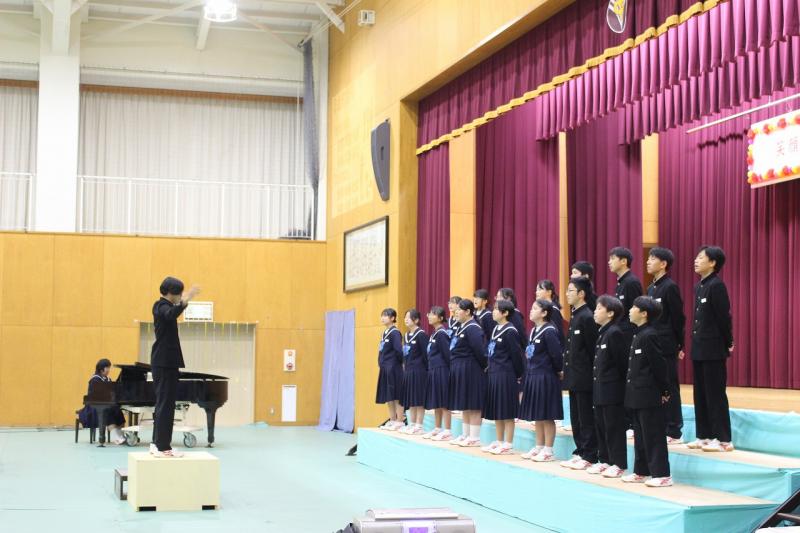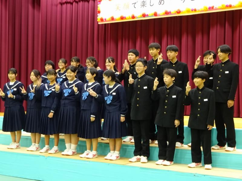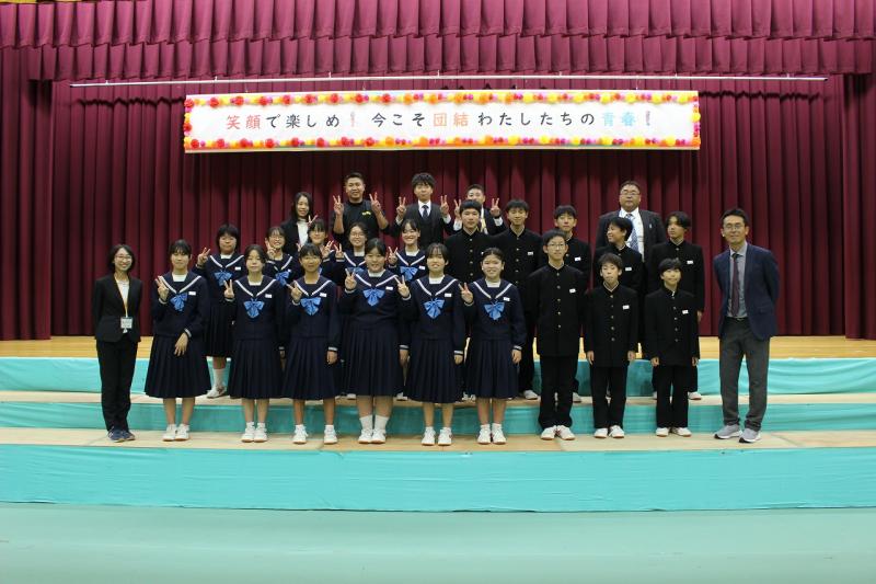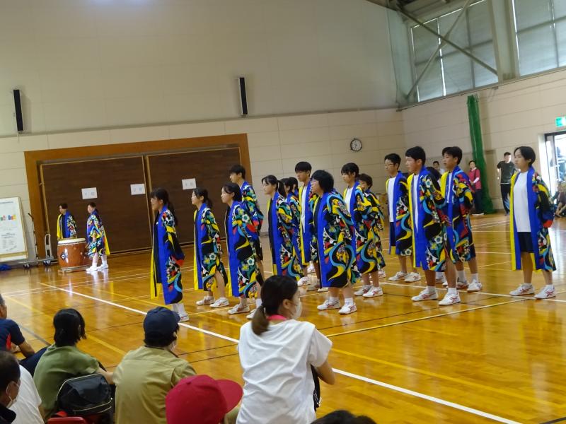 不安定な天候のため体育館での演舞となりましたが、アンコールもいただき、地域の皆様へ中学生の元気を届けることができたと思います。