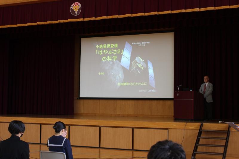 生徒からは、現在探査機が到達・採取可能な小惑星はどのくらいあるのか、小惑星探査機の燃料は何か、村田先生が中学生の時の進路希望や夢はどうだったのかなど、いろんな視点の質問がありました。