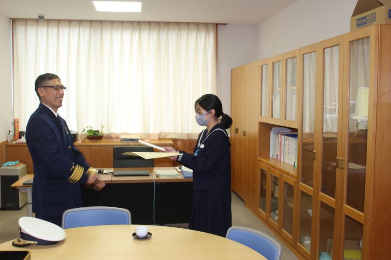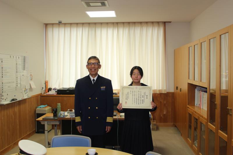本校校長室で、七尾海上保安部の方から、表彰を受けました。