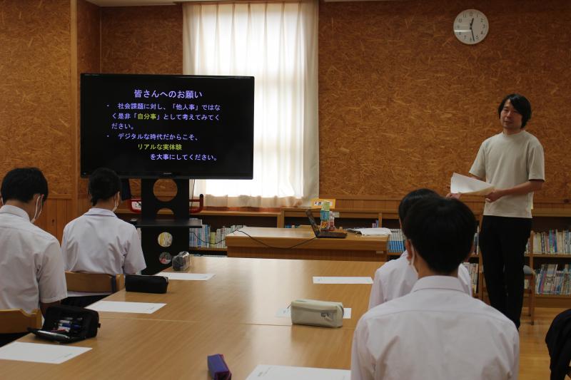 「まずは正しく知ること」「次によく考えること」「そして経験から学ぶこと」を大切に、自分事ととしてとらえ、中学生時代に「リアルな実体験」を積んでいくことで、多面的・多角的に判断できる力を付けていってほしいとお話しされました。