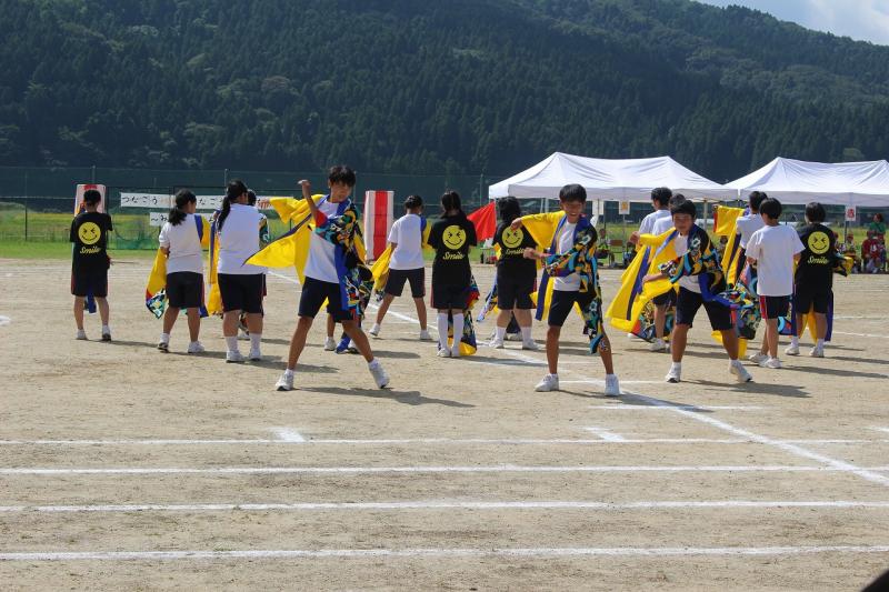 よさこい発表、小中合同での応援合戦や玉入れ、障害物競走など、児童生徒は互いに応援し合い、笑顔あふれる体育祭となりました。