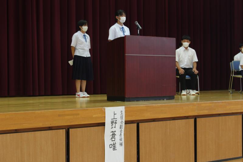 9月21日(木)に、後期生徒会役員選挙、立会演説会が行われました。
