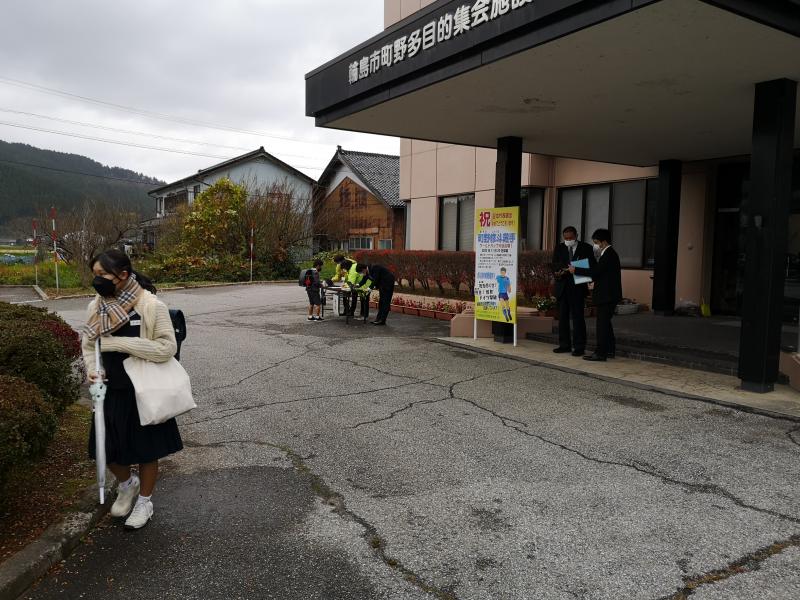 避難場所は、町野公民館と南志見公民館で、保護者の方と一緒に避難した児童生徒の安否を確認したのち登校しました。