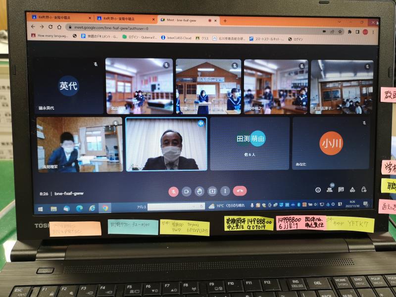 登校後、リモートで小中をつなぎ、動画(内閣府:10分)による土砂災害の仕組みと身を守る対策を学びました。
