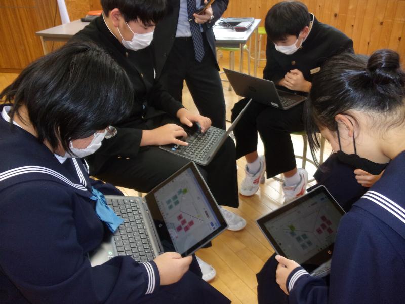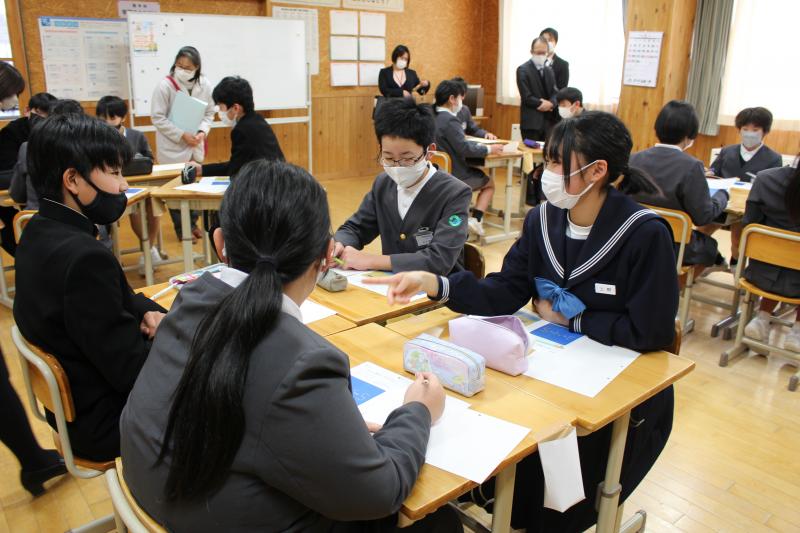 5時間目の前半は、1年生の数学でいろんな問題に挑戦し、後半は、3年生の理科で実験に参加してもらいました。