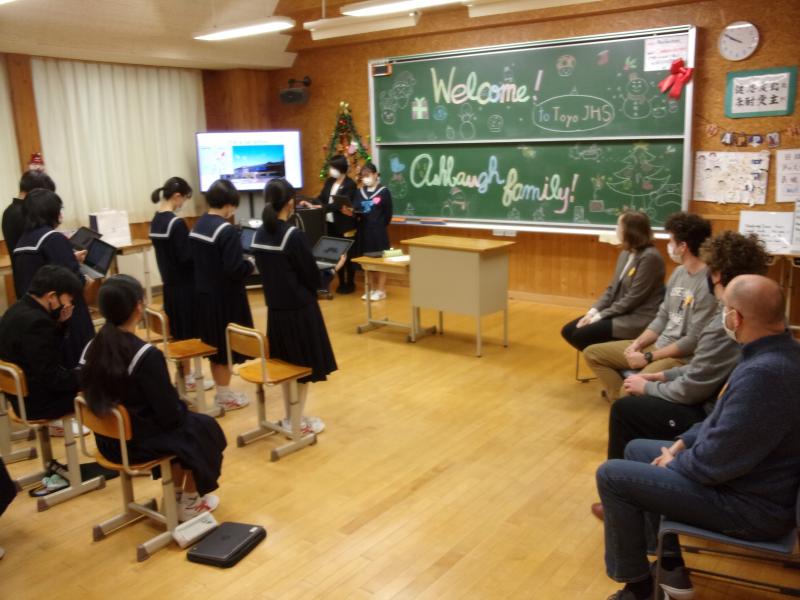 12月23日(金)、ALTのエマ先生のご家族が東陽中学校を訪問してくださいました。