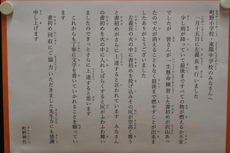 瀬野宮司さんには、左義長の案内から書初め用紙の回収までお世話になりました。ありがとうございます。