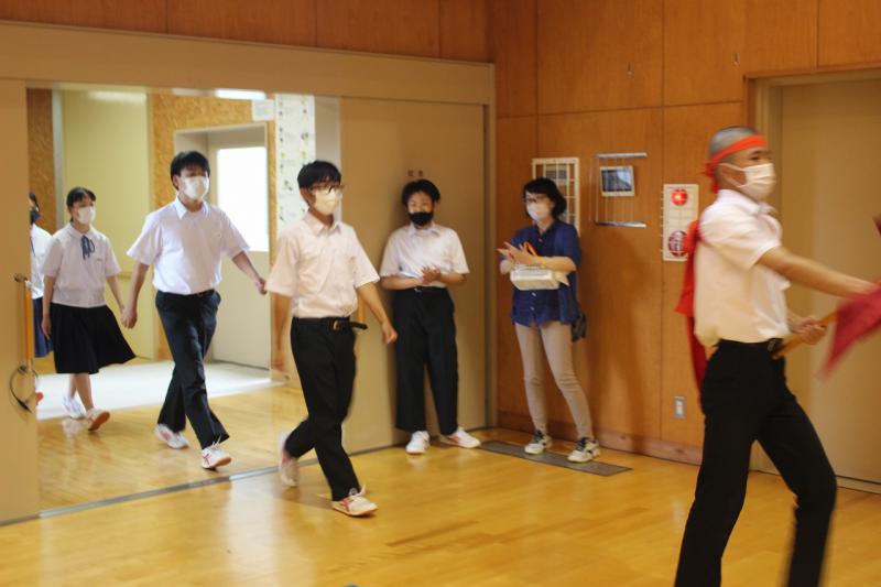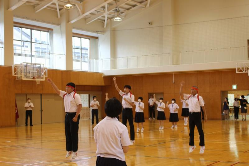 7月19日(火)に、明千代会の皆様から盆踊りのご指導を受けました。小学校と合同で練習です。