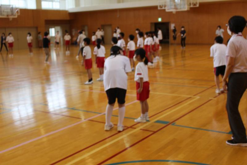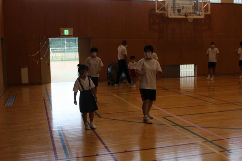 初めて踊る小学校1・2年生にやさしく教える中学生の姿がありました。