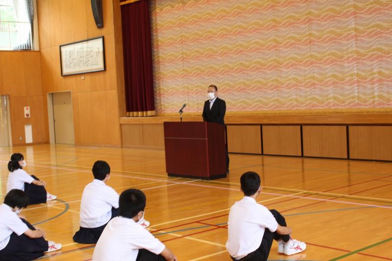 終業式では、校長先生からの式辞と生徒指導の先生から諸注意がありました。