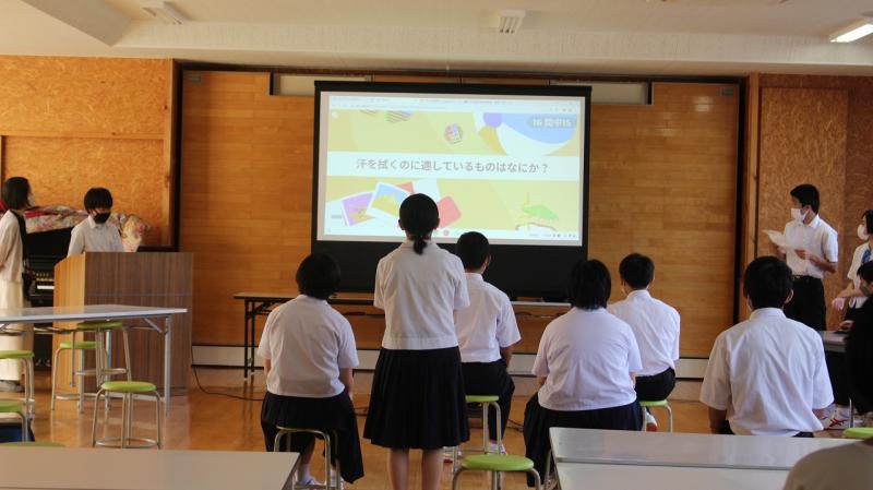 最後に、保健・給食委員会からの発表がありました。内容は、「体育祭に向けて、熱中症対策クイズ」です。