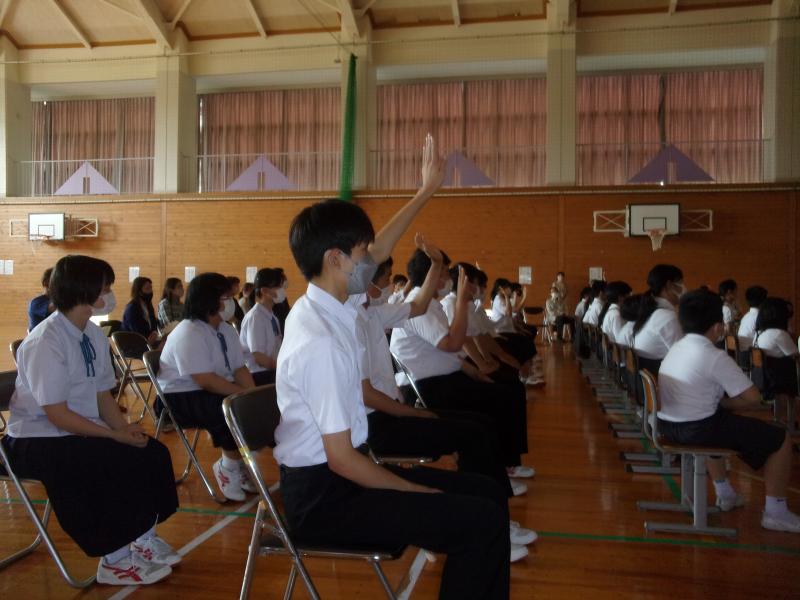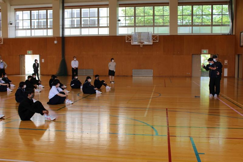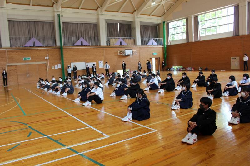 生徒は合図とともに迅速に体育館に避難し、静かに避難解除を待つ安全行動ができました。