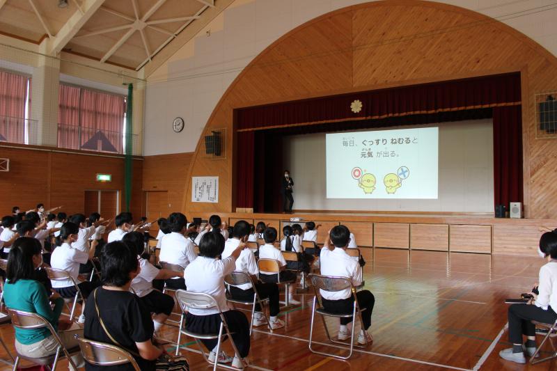 6月17日(金)に、町野小学校と小中合同保健員会 睡眠講話が行われました。