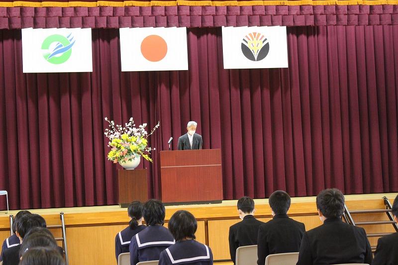 3月24日(木)修了式が行われました。1年間の学業を修めることができ,生徒たちも清々しい表情でした。来年度から,2年生は最高学年に。1年生は先輩になります。今年度,東陽中で学んだことを活かし,より良い学校を作り上げていきましょう。